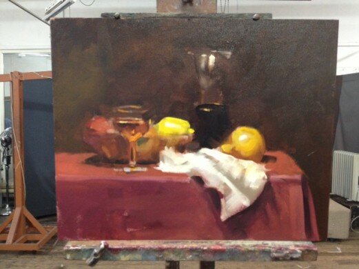 I’ve been painting on and off for forty years as a hobbyist, but have become more serious in the last fifteen. I enjoy tonal impressionist oil painting, the study of light – in the tradition of early Australian artists, particularly those influenced by Max Meldrum. Although drawn to still life, due to its convenience, I also paint more and more outdoors as well as portraiture and figure painting.