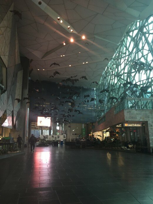 Located in the Fed Square Atrium, the exhibition showcases 200 bats suspended from the ceiling across the entire space.