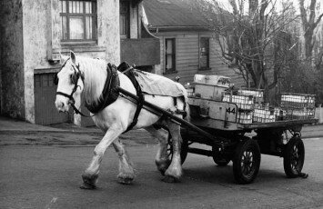 I was lucky enough to be around at a time when milk deliveries were still made with a horse and cart. I was able to go on the early morning rounds and made friends with the Milko, George and his horse, Goldie.