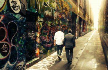 It was an unusual spectacle: two suits walking down what appeared to be a dingy alley.