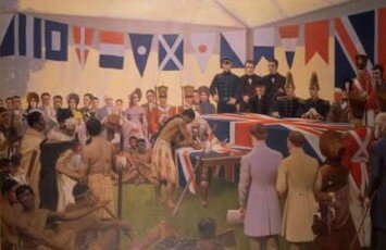 On 6 February 1840, Captain William Hobson and about forty Maori chiefs signed the Treaty of Waitangi.