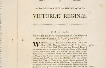 In 1855 New South Wales, South Australia, Victoria and Tasmania established constitutions and opened parliaments.