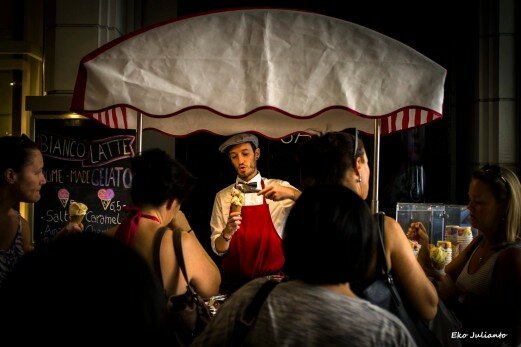 I often explore and walk aimlessly in the city looking for interesting subjects with a great light and background. My favorite spot is the little lane ways in the city.