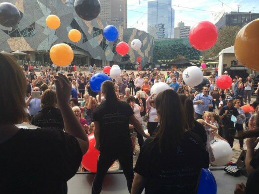 In only a few hours, Federation Square’s iconic stage would be transformed to showcase the dance and fitness abilities of children and young adults with Down syndrome. As the sun rose, the TV cameras packed up after their live national broadcast promoting the lunchtime show. Excitement and energy levels bubbled as families and friends starting arriving from throughout Victoria.