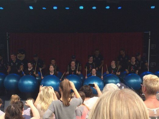 The crowd stilled in silence when the e.motion21 dancers graced the stage in a moving performance. Then, a burst into a high energy routine with the Carlton Football Club to launch the new Beat Fit program was met with loud cheers! The powerful and dynamic rhythmic drumming on exercise balls to choreographed movements was infectious. It was impossible not to dance and clap in response to the joy on the performers faces!