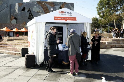 The central base for Law Week – where we locate ourselves each year, to allow the public to ask questions and find out more about Law Week – is in the Law Week Festival Hub, a marquee at Federation Square.