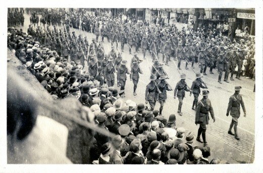 Attached is a portrait of her with her dog. She worked as a Voluntary Aid Detachment (VAD) nurse and travelled to Malaysia where her (friend/brother/husband?) Walter worked as a radio telegrapher. She has also travelled to Niagara Falls, San Francisco on the SS Orduna, Hawaii, Darjeeling – India, many paces in England including Wimbledon tennis tournament in 1951 and the Olympics in China in the 50’s. She has also photographed Australian Soldiers in the Peace Procession in London in 1919, photographed the Imhof family in the States, worked in a Balwyn “Highlow” House for returned WWI soldiers and there is also a wedding photograph from a photo studio in Mildura. She also has a portrait of Mrs Holt.