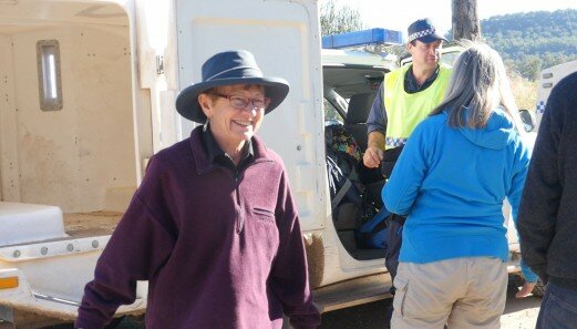 We came from Brisbane and together with folk from other localities converged on the protest campsite Camp Wando on Cliff’s farm 6 kilometres from the Maules Creek site. The NSW convoy arrived as we put up our tents. A flurry of activity followed with a walk up nearby. From a craggy summit lookout we had a good view of the surrounding rural farms and in the glancing rays of a winter sunset we learnt of what was at stake with the clear felling of the critically endangered Grassy Whitebox woodland, and cultural heritage sites of the Gomeroi people; the traditional owners of the Leard State Forest.