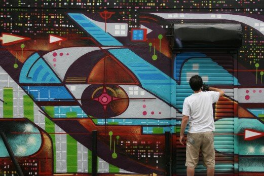 But it is not only the art that pushes him to excel, the graffiti art community has taught him about discipline and hard work, conflict resolution, how to balance creative and pragmatic concerns and “how to laugh or at least be levelheaded in the midst of the most horrific circumstances”. There are lessons and years of life experience behind the colorful sprawling masterpieces that have sprouted on the cities walls. Although he started out as, in his words, a little autocrat, painting his way through Melbourne’s transit system with the motto ‘for us, by us’ and discovering that tertiary art wasn’t for him, he has developed his own well respected style and now writes all over the world and has shown in galleries in the US and Europe. Now living abroad, he has married fellow graffiti artist Ephameron and travels the world working on different artistic projects.