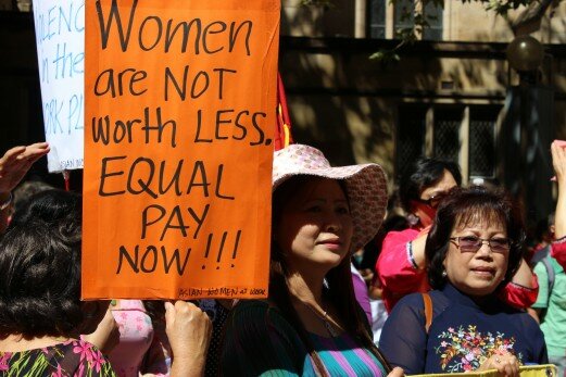 Below: March for International Women’s Day demanding equal pay (Peter Boyle/AAP)