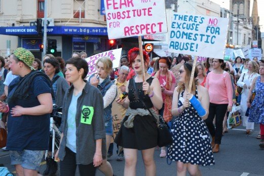 Above: Protest against male violence against women in early October (Courtney Biggs/AAP)